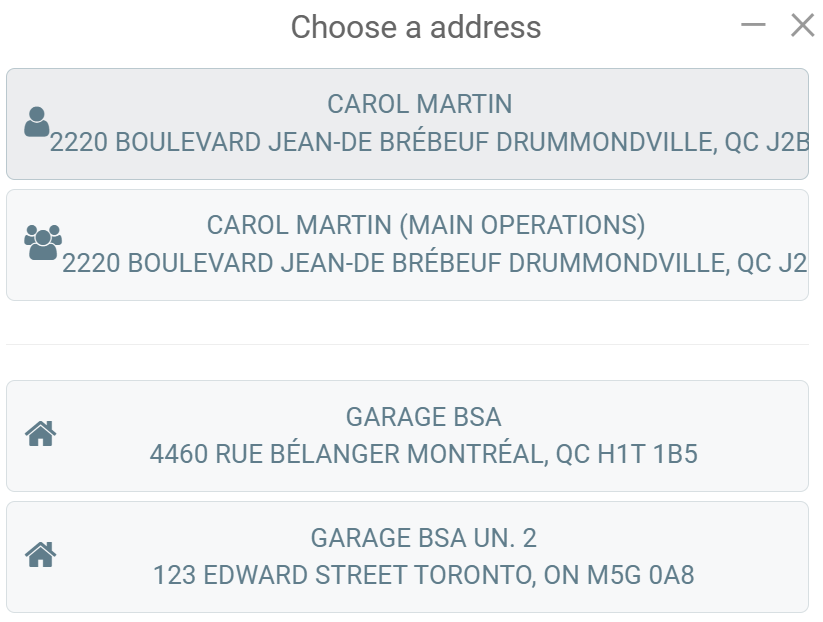 If the desired address is not listed on the page, return to the Point of Sale and modify the client file.