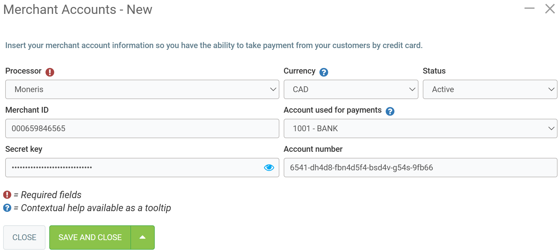 - Secret key (the secret generated on the Moneris portal, with an activation and expiry date)